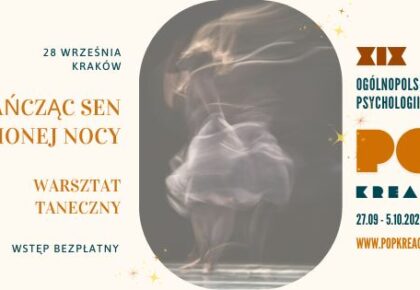 Zapraszam Cię na warsztat, podczas którego z pomocą narzędzi psychologii zorientowanej na proces popracujesz w ruchu z wybranym snem (niekoniecznie z nocy ubiegłej). Domykając tę pracę i na jej podstawie spróbujesz stworzyć prostą, krótką kompozycję taneczną. Na koniec zobaczymy, jak...